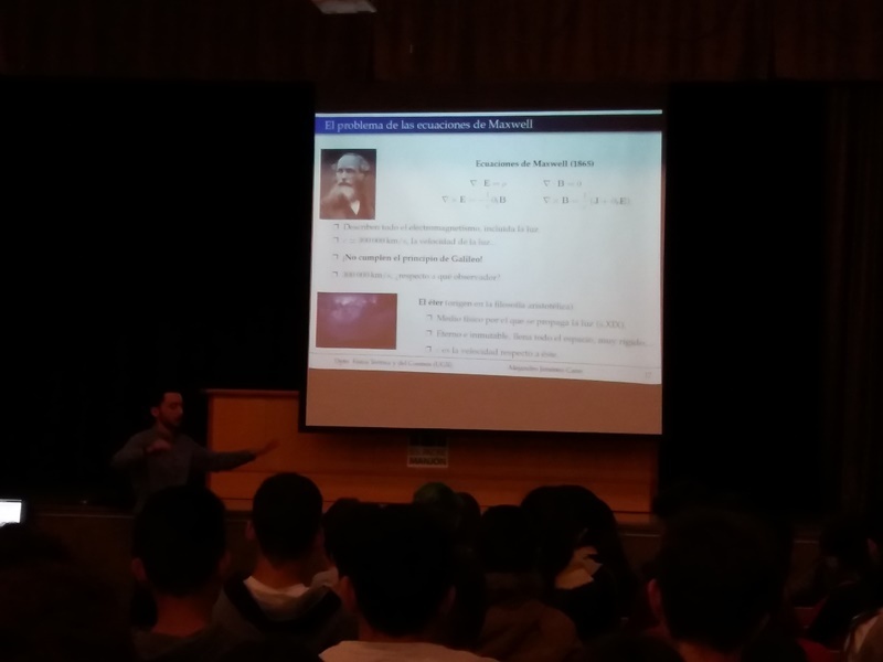 Imágenes de algunas actividades desarrolladas desde 2010 al 2022 en el I.E.S. Padre Manjón Curso 2016/2017 » Conferencia "Un paseo por la relatividad" 2016/2017